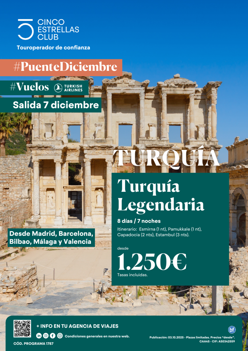 Cupos Turkish | Puente Diciembre Turquia Legendaria 8ds/7ns dsd 1.250€ sal. 07 dic dsdMad,Bcn,Bio,Agp yVlc